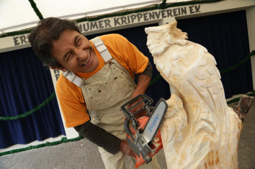 sowohl mit der Kettensäge als auch mit dem filigransten Schnitzbeitel.